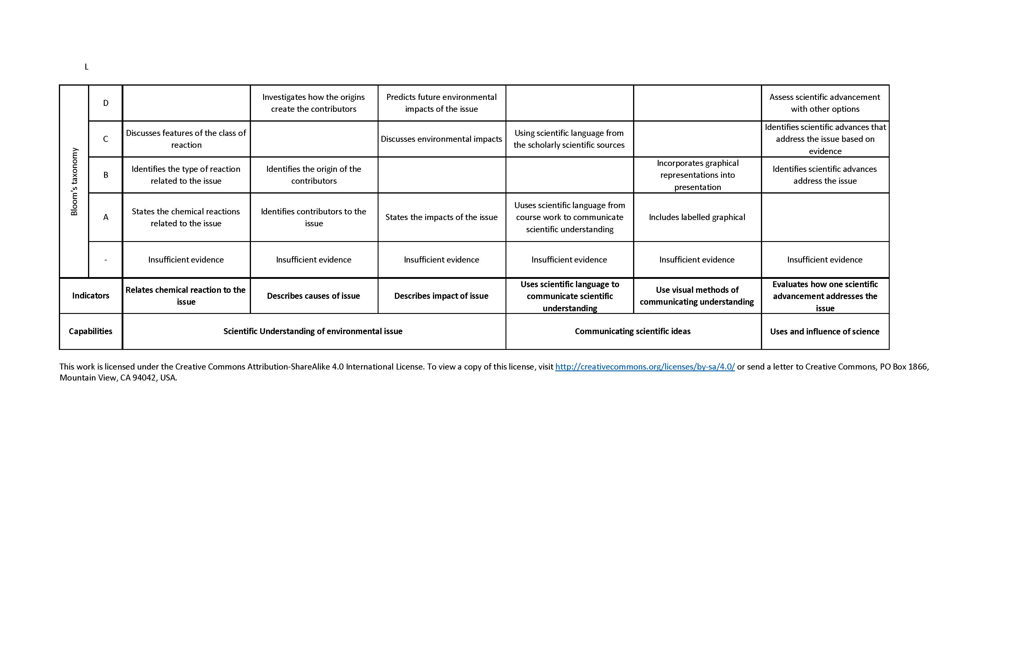 | High | Able to effectively analyse and discuss the chemical, social and environmental impacts of issue |