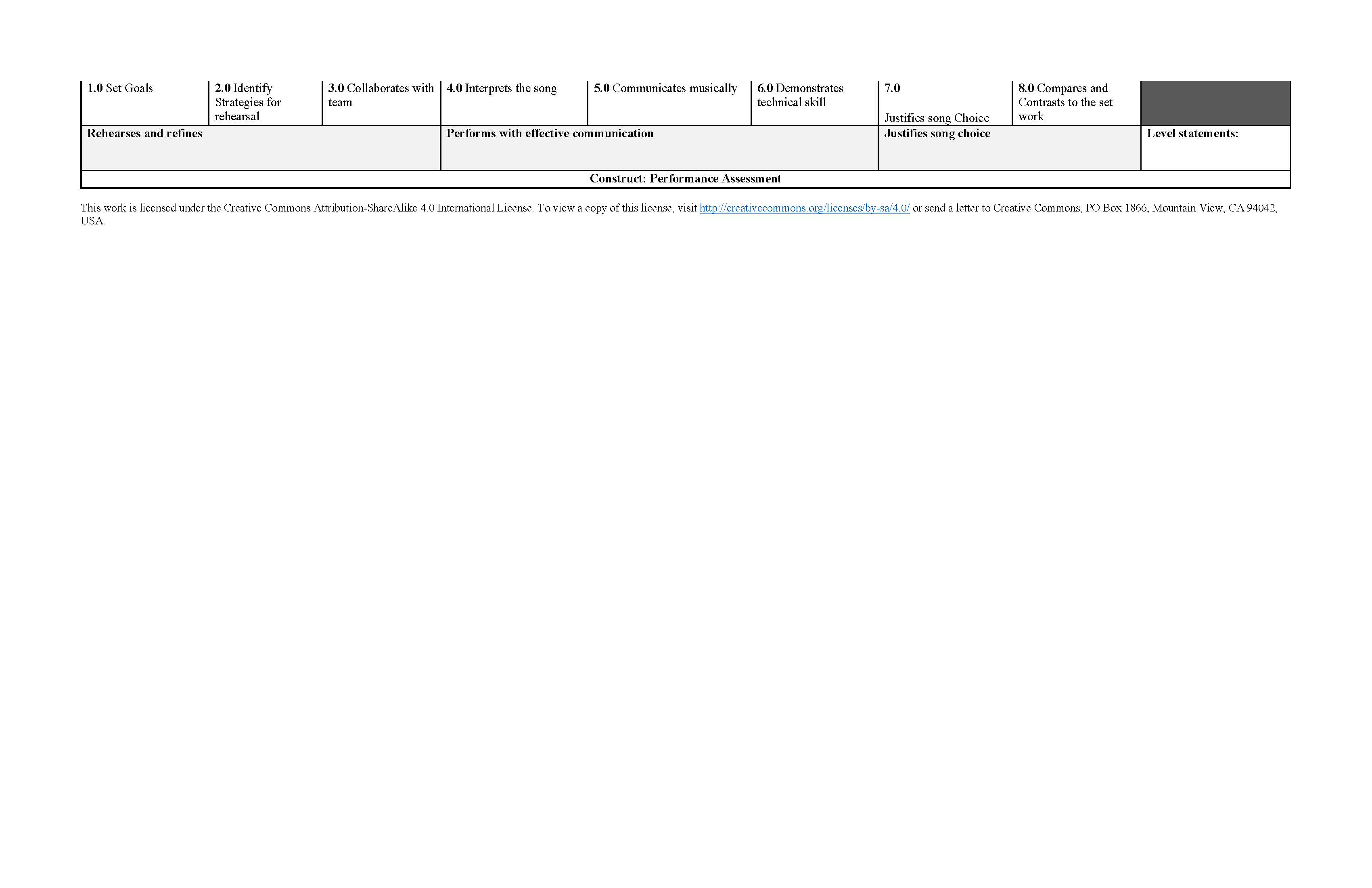 What records were kept from assessment (mark in markbook, added to student portfolio, etc.)? 1. Teacher uses a Google chart to track the progress of the students rehearsals. 2. Students keep a diary of their rehearsal with the goals of each rehearsal. 3. Performance. |