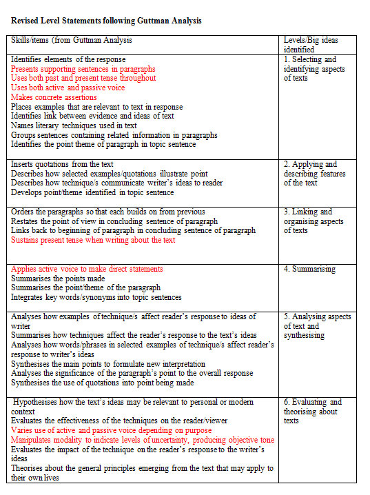 Revised Level Statements following Guttman Analysis