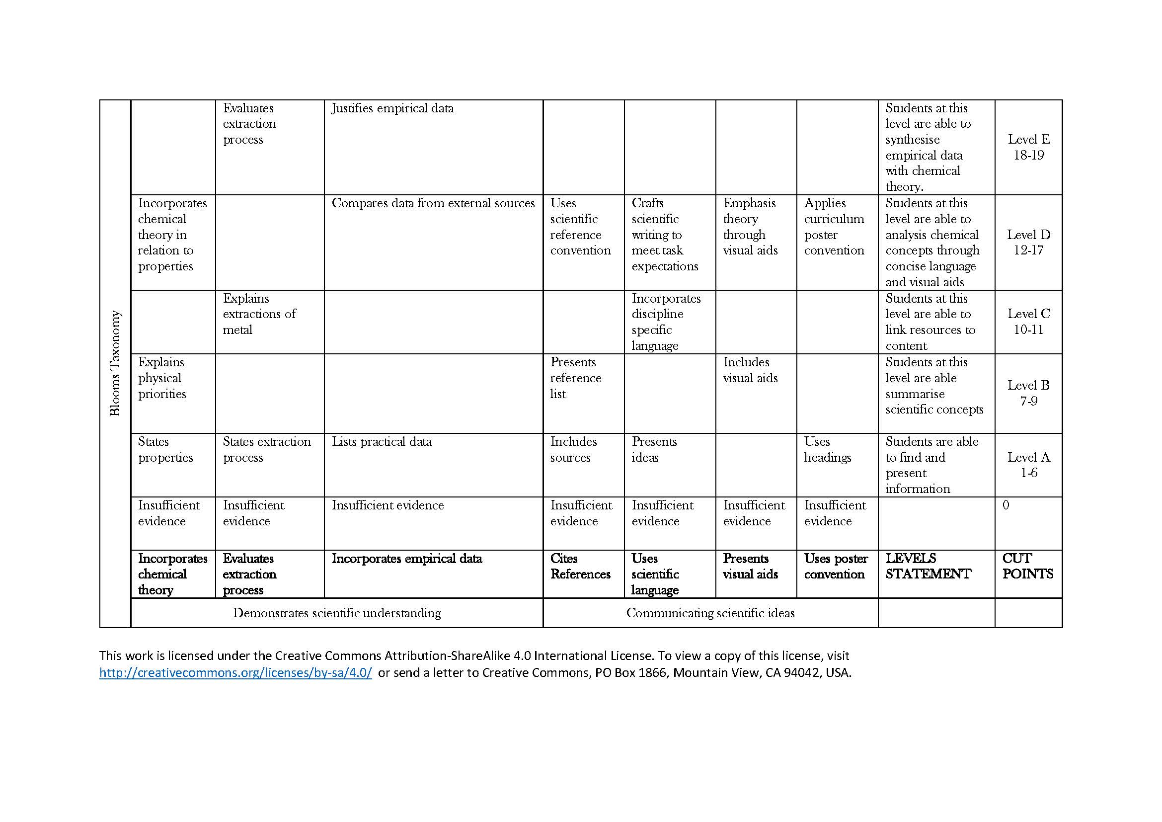| Interpret | Marks give students an indication of how well they understood the scientific concepts in metallic bonding and the extraction process of the metal from its ore. Marks also informed students of how well they presented the information. |